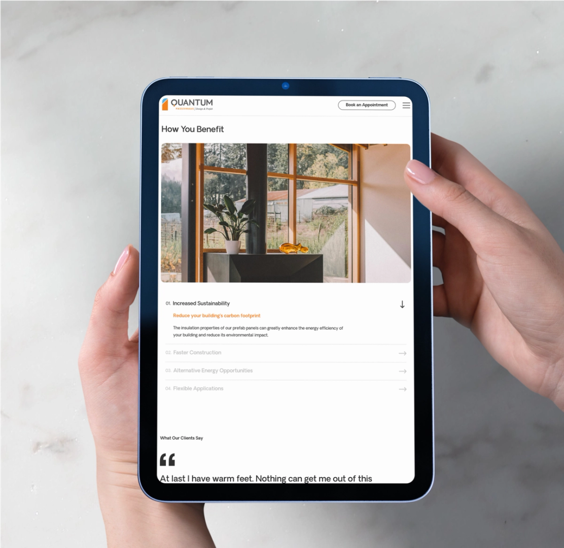 Quantum Passivhaus approached us to create a modern, scalable, and user-friendly website to showcase their innovative prefab building solutions, drive qualified leads, and educate the market on Passive House construction.