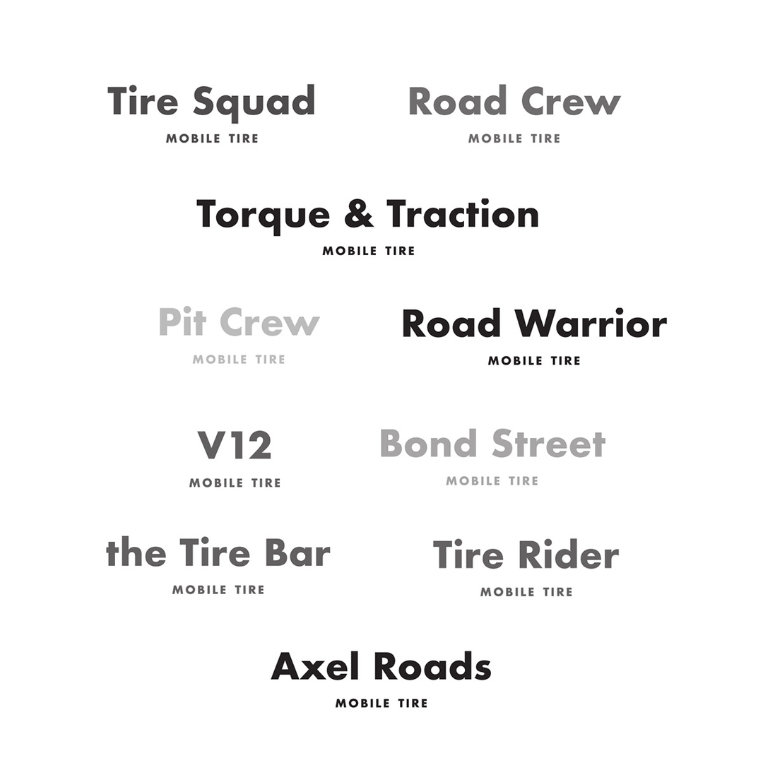 After just 3 weeks, the company name was chosen – Torque & Tire! From there, we had just 2 weeks to conceptualize and design 5 unique brand mark options that would stand out in their customers’ minds.