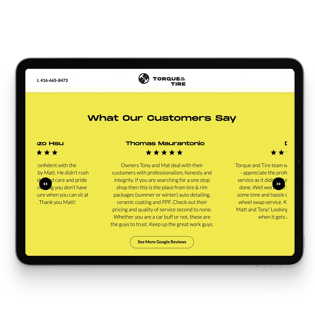 We selected and integrated all the tech for Torque & Tire’s ecommerce service website, including appointment scheduling, point-of-sale system, and deposit & payment processing.